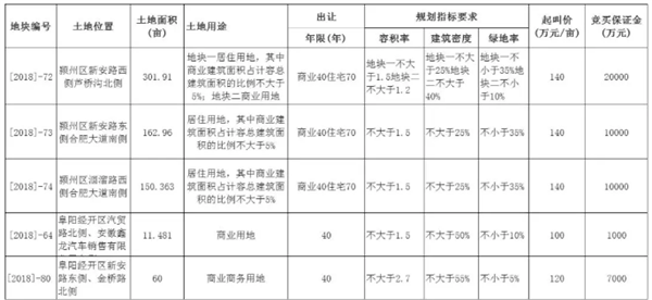 昨天,阜阳国土资源局爆出5幅出让地块