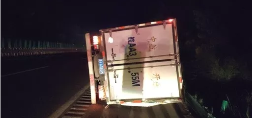9月4日晚23:20分左右,阜阳市高速交警二大队接到报警:一辆运送冷冻食品的货车在S12滁新高速合肥往新蔡方向轮胎爆胎后发生侧翻。