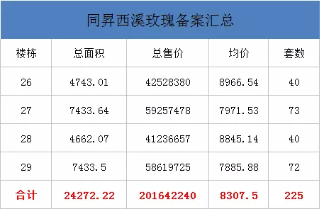 阜阳市发改委网站(市物价局)发布同昇玫瑰绅城26#、27#、28#、29#商品房销售明码标价及相关信息公示,同昇玫瑰绅城26#-29#共备案225套住宅,备案均价8307.53元/㎡,总备案建筑面积24272.22平米。详情如下: