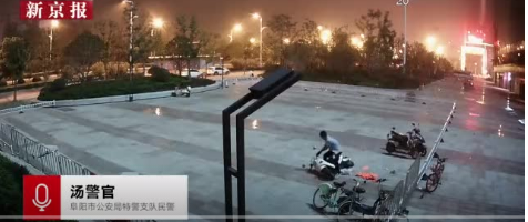 9月21日凌晨4时30分许,阜阳市交警五大队民警接报警,在颍上路红旗中学附近路段,一辆黑色轿车追尾撞到路边停放的白色SUV。民警赶到现场发现,被撞车辆号牌为皖KK009U,系一辆“飞碟牌”小型汽车。司