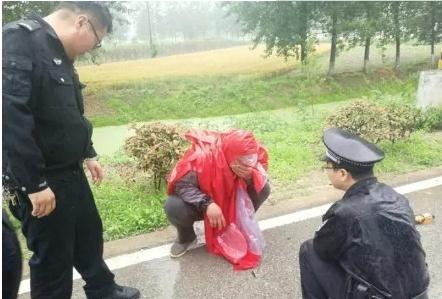 5月21日下午17时许,界首市公安局新华派出所值班民警陈振威、付杰在辖区内巡逻,当巡逻到界光路吕寨路段的时候,发现汪庄行政村的村干部尹从民、郭士贤站在路边,有一个穿着一件红色雨衣的男子躺在路上,
